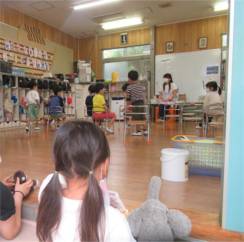 世界では食べ物を十分に確保できずにお腹を空かせている子どもや、綺麗な飲み水がなく学校に行かないで川まで水を汲みに行っている子どもがいるということを知りました。また今回はアフガニスタンの現地の写真を見ながら、何年も活動されている方のお話を聞くことができ、子どもたちと共に心にとめる時間となりました。