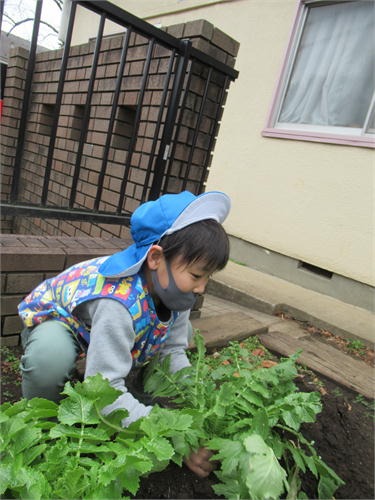 天使幼稚園ではクリスマスまでの間をイエス様をお迎えする心の準備をする期間として温かい気持ちで過ごそうと伝えています。その中で、『思いやり週間』としてアフガニスタンの人たちのために献金を集めています。みんなが集めた献金はアフガニスタンのために使われますが、その中で水路が作られた脇に“柳の木の苗木”を植えるためにそのお金が使われていたそうです。柳の木の根っこは水に向かって生えていくそうで、水路の石の壁を強くする役割がある、ということも教えていただきました。