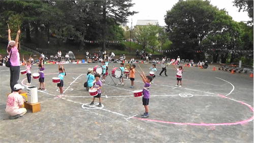 そして、いよいよリズム遊びです!リズム遊びは、小太鼓・大太鼓・シンバルに分かれて行います。今年は『みんないろのせかい』という曲に合わせて演奏しました。何よりも楽しむことを大切に、“月組さん全員の心を一つに”とこつこつ練習を積み重ねていき、迎えた本番。子どもたちの笑顔とともに、元気いっぱいの音色が響いていました。演奏している間のかっこいい表情、終わった後に沢山の拍手をもらって嬉しそうで誇らしげな表情、どれもきらきらと輝いていました。