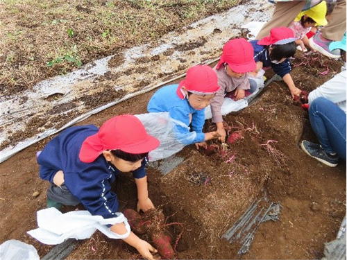 先日、気持ちの良いお天気の中、天使幼稚園のみんなでお芋ほりに行ってきました。幼稚園から歩いていけるところにあるお芋畑で、毎年掘らせていただいています。子どもたちがいつも楽しみにしている行事です!